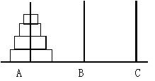 汉诺塔(又称河内塔)问题是印度的一个古老的传说。开天辟地的神勃拉玛在一个庙里留下了三根金刚石的棒,第一根上面套着 64 个圆的金片,最大的一个在底下,其余一个比一个小,依次叠上去,庙里的众僧不倦地把它们一个个地从这根棒搬到另一根棒上,规定可利用中间的一根棒作为帮助,但每次只能搬一个,而且大的不能放在小的上面。面对庞大的数字(移动圆片的次数)18446744073709551615,看来,众僧们耗尽毕生精力也不可能完成金片的移动。