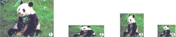 如图所示的一张照片(图①),可以把它的宽度或者高度减小从而减少照片的尺寸(如图②、③、④)。但只有等比例缩放的情况下照片才是最好看的,如图④;图②照片被压扁,图③照片被拉长。