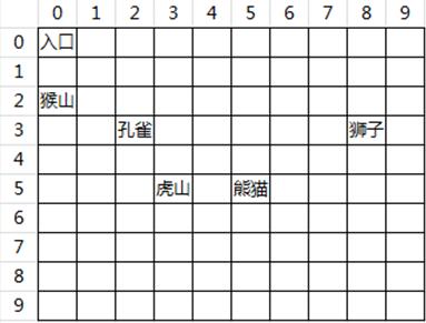 例如:假设小红在孔雀区 (3,2),离小红最近的 2 处游览区分别是猴山 (2,0) 和虎山 (5,3),但猴山离入口更近,因此输出猴山的坐标。