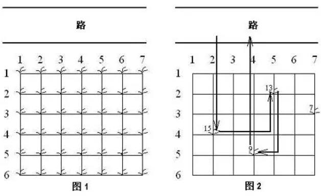 鲁宾逊先生和多多都很开心,因为花生正是他们的最爱。在告示牌背后,路边真的有一块花生田,花生植株整齐地排列成矩形网格(如图1)。有经验的多多一眼就能看出,每棵花生植株下的花生有多少。为了训练多多的算术,鲁宾逊先生说:“你先找出花生最多的植株,去采摘它的花生;然后再找出剩下的植株里花生最多的,去采摘它的花生;依此类推,不过你一定要在我限定的时间内回到路边。”