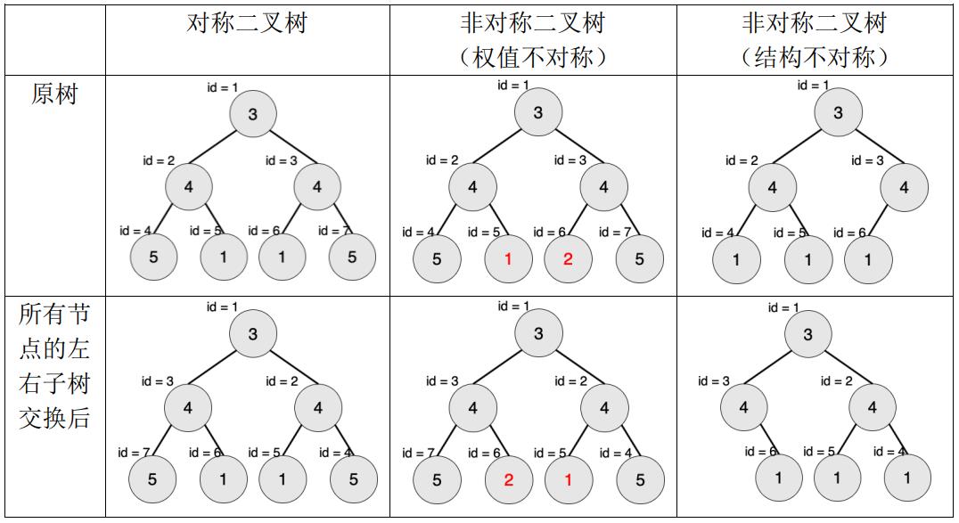 2. 将这棵树所有节点的左右子树交换,新树和原树对应位置的结构相同且点权相等。