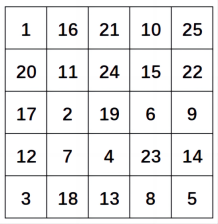 在 5\times 5 格的棋盘上,有一只中国象棋的马,从 (1,1) 点出发,按日字跳马,它可以朝 8 个方向跳,但不允许出界或跳到已跳过的格子上,要求其跳遍整个棋盘。输出跳遍整个棋盘的不同方案总数。
