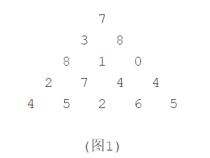 图1给出了一个数字三角形。从三角形的顶部到底部有很多条不同的路径。对于每条路径,把路径上面的数加起来可以得到一个和,你的任务就是找到最大的和。