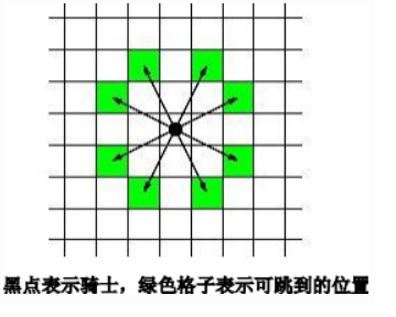 在一个棋盘上有一个骑士,骑士可以按下图所示的8方向跳到相邻的格子,请问骑士从给定的起点到终点,至少需要跳多少次?